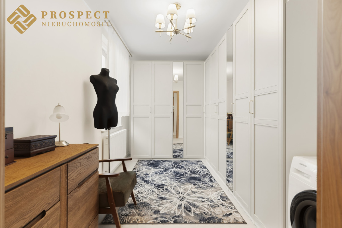 - pokój o dowolnym przeznaczeniu ( obecnie pełni funkcje garderoby i jest zabudowanym dużą ilością szaf )