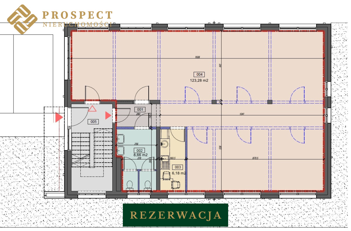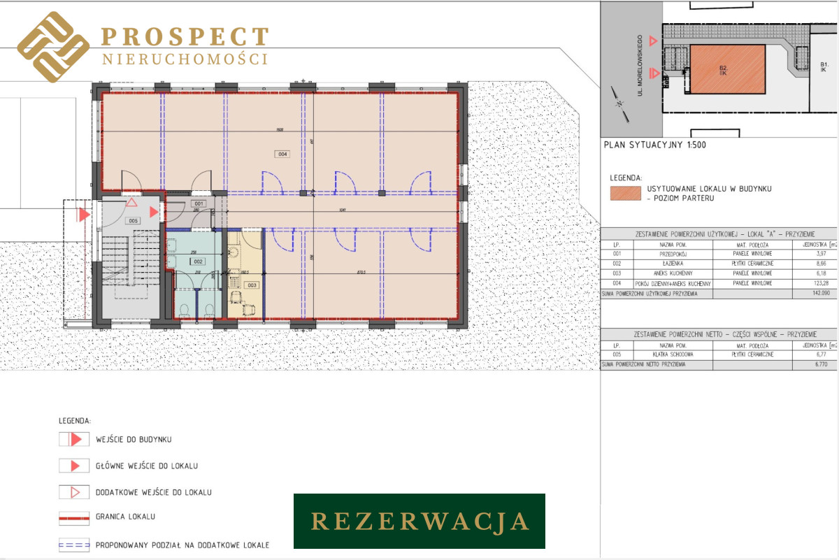 Lokal o powierzchni 142 m2 znajduje się na parterze dwupoziomowego budynku. Piętro powyżej zajmować będzie ciche biuro, które nie generuje hałasu ani nadmiernego ruchu.