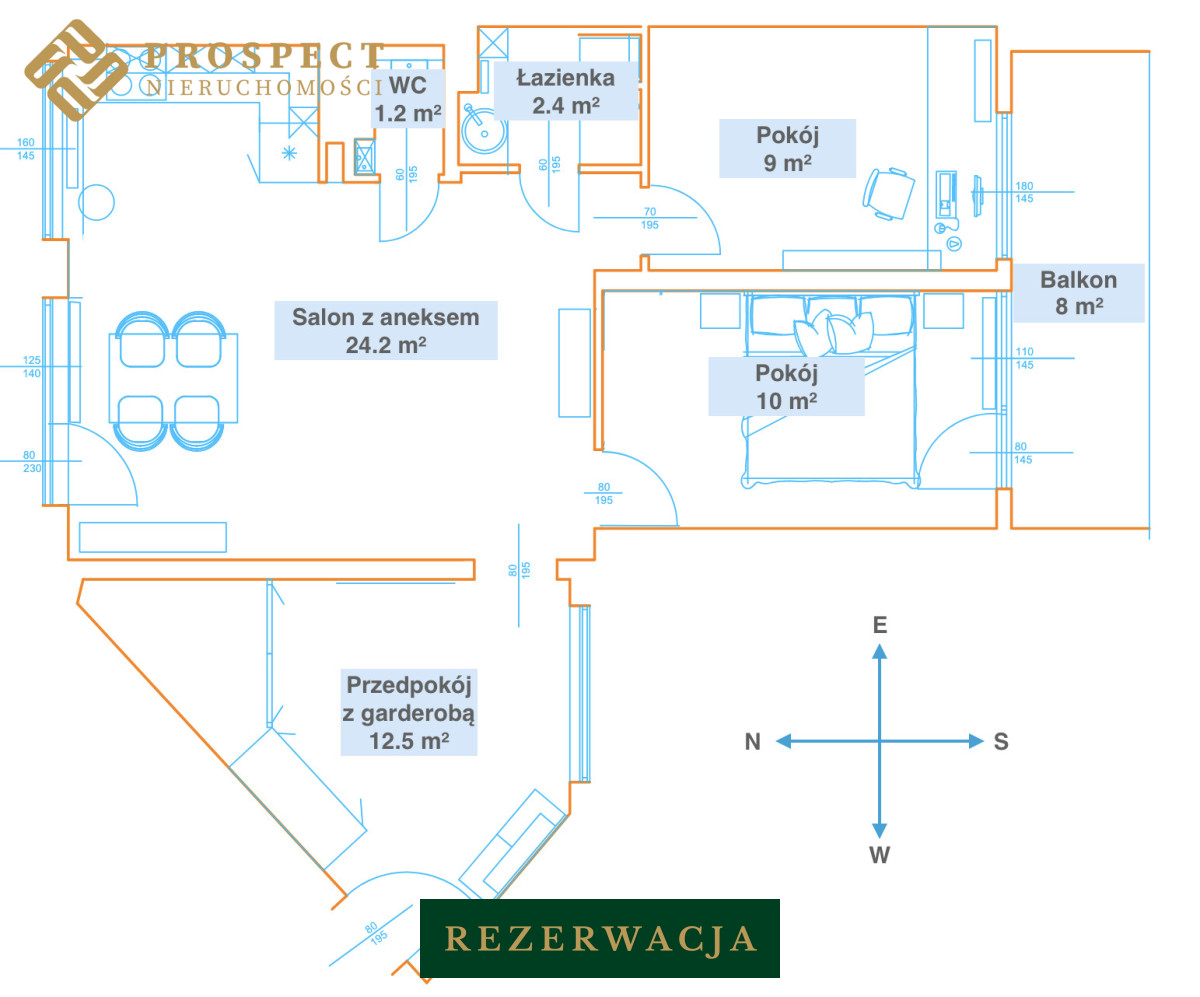 - dwie sypialnie - 9 m² i 10 m² (jedna pełni funkcję sypialni, z wyjściem na duży balkon drugi pokój służy jako gabinetu z możliwością przekształcenia w pokój dziecięcy lub dodatkową sypialnię).